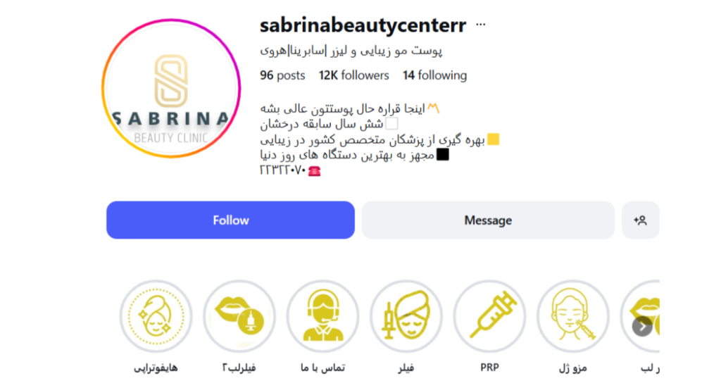 - اینستاگرام: @sabrinabeautycenterr